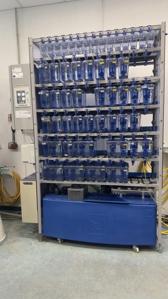Στη συνέχεια, ακολούθησε επίσκεψη στη μονάδα Zebrafish, όπου παρουσιάστηκε η χρήση του συγκεκριμένου οργανισμού-μοντέλου στη μελέτη στρεσογόνων παραγόντων και των επιδράσεών τους σε βιολογικό και κυτταρικό επίπεδο.