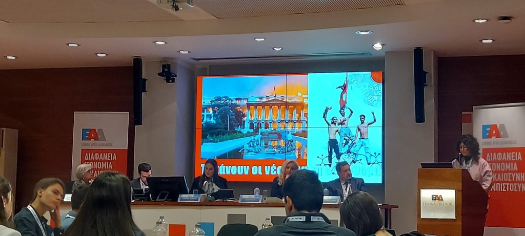 - Συμμετοχή σε συζήτηση στρογγυλής τράπεζας για το φαινόμενο της διαφθοράς, με εκπροσώπους του δημόσιου και ιδιωτικού τομέα, της εκπαίδευσης, της ακαδημαϊκής κοινότητας και των ΜΜΕ.
